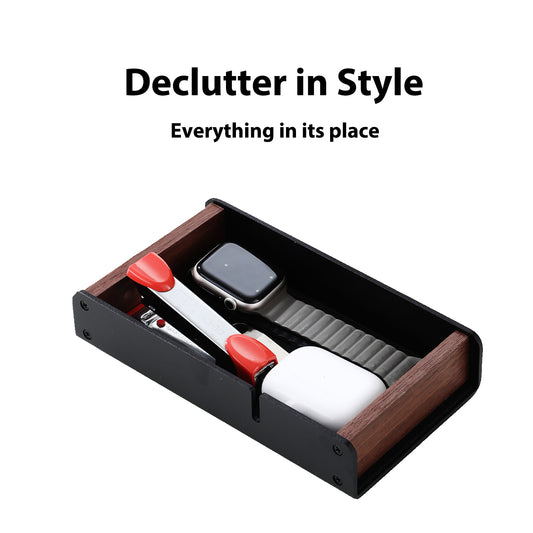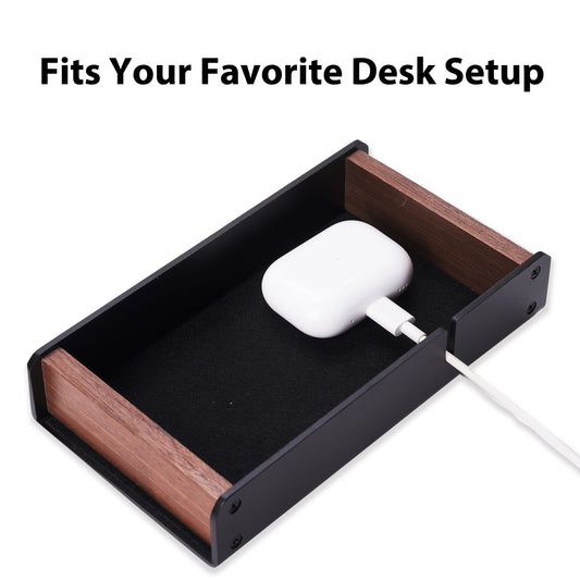 NIRVASH Walnut Desk Tray with Pen Holder Set -Black
